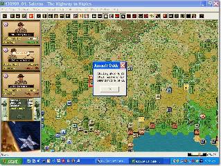With its low minimum hardware specifications, Salerno should run on most Windows PC platforms. However, although I have a reasonably fast Intel CPU (2.4 GHZ) with 512 MB of RAM, the game map scrolling on my system was very sluggish. Changing my video settings from 32-bit to 16-bit made a big difference in the performance. The game did lock-up or crash to the Windows desktop several times; however, the auto-save feature saved the game at the end of each turn, minimizing the effect of the crashes.