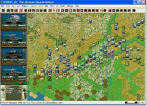The on-map unit counters are attractive and present the basic information the player needs to develop strategy and plan moves. The color scheme makes it easy to differentiate between your units and the opposing force. After selecting a hex, the Unit Box area at the left of the main map window provides detailed information on the units in the hex, with a detailed graphic identifying the primary type of equipment or soldier in the unit.