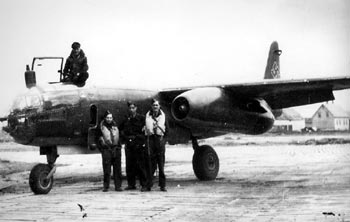 Ar 234BThe first operational jet bomber/recon ship was the Ar 234B. Powered by a pair of Junker Jumo 004Bs with 1,980 lbs thrust each it could manage 461 MPH clean at 19,865 feet. It had a ceiling of 23,810 feet. Operations began in November 1944.