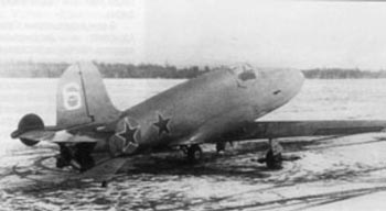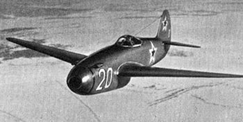 A RNII D-1A-110 liquid bi-fuel rocket motor of 2,425 lbs. thrust was to give a top end of 559 MPH for 15 powered minutes. The tiny 3,710-lb. fighter, akin to the Me-163, would glide back to earth landing on retractable skis or wheels. It was only 21 feet long with a span of 21.25 feet.