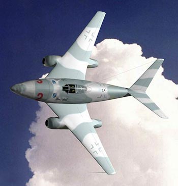 He 162Before the Heinkel 162 was in service designs for rearward and forward swept wings was alive. Another variation saw a steeper dihedral with turned down tips.