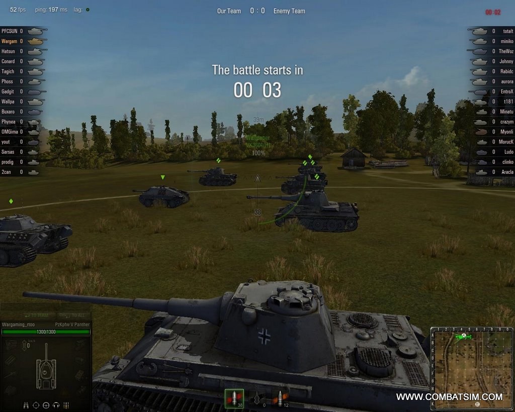 The game is played mostly in the third-person view outside the tank, behind the gunners scope or, if playing an SPG, in the artillery map. Controls are your normal FPS controls W,A,S,D for movement and turret, fire and camera control with the mouse. The F1 function key will bring up a quick help menu during battle if needed.