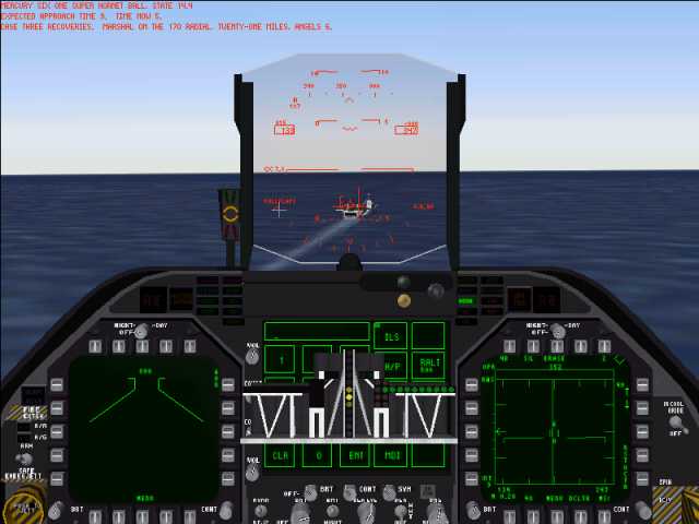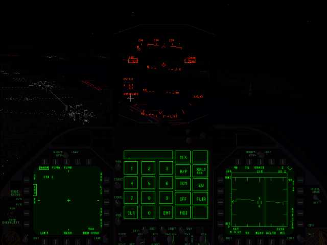 Fig. 4. Runway LightsAnother important fix was the meatball. The meatball is the term used to identify the IFOLS. This device sits on the left side of the carrier and gives the pilot (using a series of lights) information about how good (or how bad) his approach is when attempting a carrier landing. Following the information on the meatball before the patch brought you in low, making most of your traps a 1-wire trap. This has been corrected and you can now keep that perfect cross on the ILS, and follow the meatball to a perfect 3-wire trap. This fix along with the flight model changes mentioned above should now make carrier landings a reality for those who found it an unachievable challenge. There was a bug discovered in campaign mode that allowed the player to have unlimited weapons by loading custom load outs. This bug has been fixed in the patch. Time to keep a close eye on those GBUs!