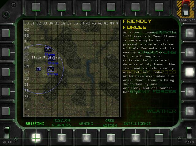 Fig. 7. Campaign BriefingThe campaign in Gunship! contains nothing more than a series of scripted missions. My main complaint against the current campaign engine is that it will not let you select specific mission to fly and it will not let you move to the next mission until you successfully complete the current mission. For me this leads to many frustrating 'do overs'. Another let down is that during mission play in the campaign, a lot of action is concentrated in a small area of the large 16km x 16km map. I will again quote from the box: "You're the point man for WWIII" and "Realistic World Campaign System". There is no system in this campaign and it is not a realistic world WWIII battlefield environment. A World War III campaign should have multiple points of engagement with the enemy over this huge area at any given time.