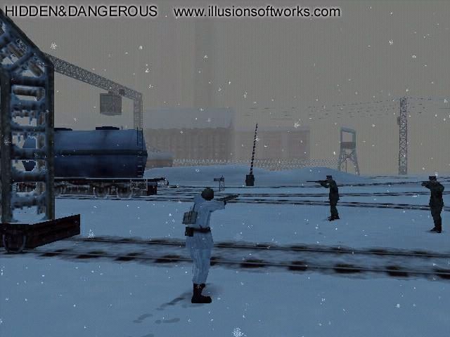 Q: Can you compare the character control interface to other 3D shooters ... How much freedom of movement and action will the player have ? A: Hidden and Dangerous is not a shooter. When you stay face to face to an enemy, your chances to stay alive are 50 to 50. In fact, there is a possibility to switch over to 1st person, controls are like in other games - mouse turning around and aiming, ctrl firing, side arrows strafes. Of course set up control options are included. Q: Can you elaborate more on "your chances to stay alive are 50 to 50?" A: Each enemy has its own abilities, like you have. Some good snipers shoot you down in one shot. Some worse soldiers shoot worse, depends on how our designers set them up. I wanted to say when you don't take cover and just shoot at the enemy, if you do not kill him for the first shot, he will start firing at you without any delays. Now it depends who is sharper at the moment. You can help yourself when you do not stay like in a shop window, but lay down. It also depends where you/enemy are hit - if in head, you are killed, if in some limbs, they can shoot more times at you until you die.