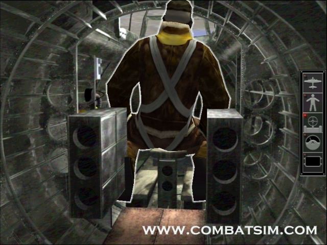 ![]() Viewpoint Interface: Click for Tail Gunner Moving your cursor to screen right brings up the viewpoint interface, giving you access to five different perspectives. From top to bottom, they are External View, Compartment View, Instrument View, Action View, and Window View.