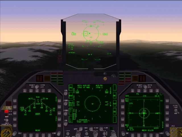 ![]() Single Target Track - The Single Target Track (STT) mode provides accurate tracking of a single target and can function automatically by engaging auto acquisition (AACQ); manually by designating a target on the VS, RWS or TWS displays; or by launching an AIM-120 AMRAAM missile while in the TWS mode. STT displays show the tracked target, velocity vector, maximum and minimum range, missile launch limits, an allowable steering error circle and an aim dot. This mode is highly recommended, as you close to optimum medium-range missile range, to reduce distraction. But after you successfully engage, don't forget that there may be more bandits out there! Quickly switch back to TWS to regain the 'big picture.' Auto Acquisition Mode (stabilized)- The radar set has an Auto Acquisition (AACQ) capability in the VS, RWS and TWS modes. When selected, the radar will automatically acquire and track the first/nearest target detected in the VS and RWS modes or the launch and steering target (missile) in the TWS mode. AACQ is "stabilized" which means that it is independent of your aircraft's relative pitch. This makes it useful for initial bandit targeting, but it is not recommended for close-in ACM, e.g. gunfighting. Auto Acquisition Modes (destabilized)- Also known as Air Combat Maneuvering Modes, there are four modes of destabilized auto acquisition, with a max range of 10 NM. Being non-independent of aircraft pitch they are best used for a 'knife fight in a telephone booth.' The AACQ modes are as follows... |