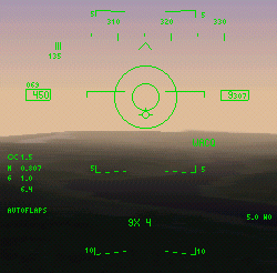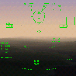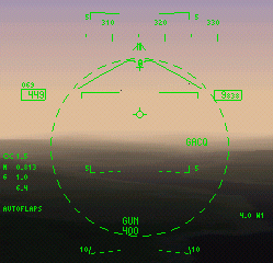 ![]() VACQ - Vertical Acquisition in which the radar scans +550 to +50 vertically, with a two-bar scan centered on the longitudinal axis, and automatically acquires and tracks the first target detected within the specified range. The scan pattern is referenced to the aircraft roll and pitch axes. This mode is best employed when you suspect a large vertical separation between you and your foe. GACQ - Gunsight Acquisition which displays the target nearest your aircraft after a scan of volume projected off your HUD field of view. This is the 'work horse' of the close-in, auto-acquisition, gunfight modes. If your situational awareness is pretty good this mode will help you maintain it, or quickly enhance it. Click HERE for a gun locked radar HUD.