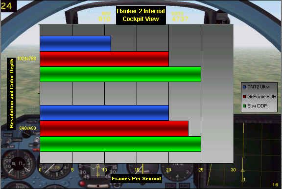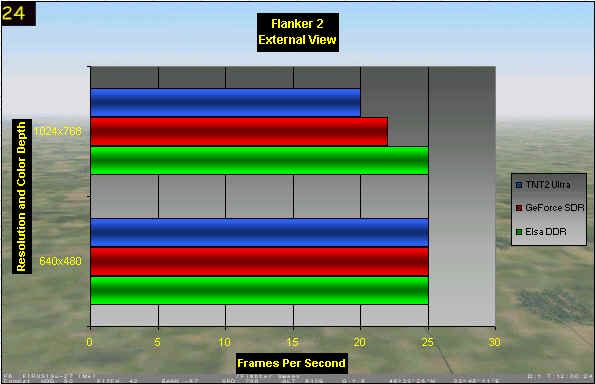 As you can see, the Elsa X² Erazor DDR card usually outperforms the Creative SDR card by about the same margin as the SDR board outruns the TNT2. There are instances where the SDR card is as fast or faster than the DDR Ram equipped Elsa, particularly in Falcon 4.0. If simulations are all you play, and when the extra cost of a DDR GeForce card is considered, an SDR GeForce or TNT2 card may serve you better for now. It should be noted that the Elsa GeForce DDR card performed noticeably better than the other two cards in non simulation type games, especially Quake3 and Unreal Tournament, so if you play first person shooter games as well as simulations, and don't mind spending some extra cash, the Elsa is among the best video cards available. We had no problems whatsoever with this card.