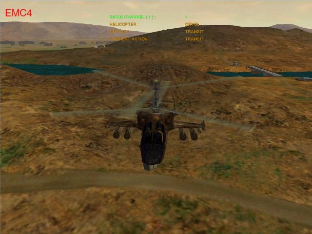 ![]() The feeling of flight is good, and if you select high detail and complex texture mesh the sense of speed is excellent. I tested on a Celeron running at 500MHz with 128 MB and Matrox G400. I was able to run with all settings to the max and a fluid frame rate. Flight response feels very different from Team Apache when all realism options are toggled on. The chopper feels solid and with an inertia that I haven't noticed in other helo sims. It's different also interesting getting used to the torque cancelling effect of counter rotating rotors.