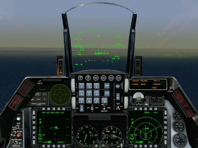 Xis (version 5) cockpit is 1.07 certified and the download includes sound enhancements. Many fixes and tweaks were made September 10th. The Master Arm switch now works as well as ECM indicator. Click HERE. 1.9 MB. A similar work based on Xis and Corrie Wessels, Moszo's 1.08 800x600 cockpit with black instruments is HERE. 2 MB. Kneeboards and Maps