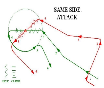 There are times when both aircraft must attack from a certain general direction. In this situation, a same-side attack might be the way to go.