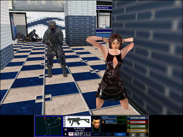 Fig. 7. You need to determine your enemyIn Rainbow Six, a player could get shot four or five times and run as if they had never been touched in the first place. Now (much how a wounded player runs more slowly) being shot yields a more realistic effect. I should take this time to mention that there have been reports of Urban Operations being less stable for some players than Rogue Spear. I, however, have never seen an issue with Urban Operations. The Redstorm developers have also examined these claims (including one of a mysterious memory leak), but all claims have turned up empty. From my experiences, Urban Operations is as stable, if not more so, than Rogue Spear.