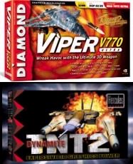 ![]() Voodoo3-the first out of the gate in this new generation of video chips, 3dfx's latest has been called by some the Banshee2, and not in a complimentary manner. The third offering of a 2d/3d solution by 3dfx, the V3 offers outstanding 2d quality due to its high RAMDAC, 16mg of onboard memory, the closest thing to perfect compatibility with all games currently on the market, possibly the best overall raw peformance, and a surprising improvement in image quality over that of last year's Voodoo2. On the downside (there always has to be one, doesn't there?), the V3 lacks what some consider important features, such as 32-bit output, large texture sizes, and AGP texturing, and while these aren't critical omissions for today's games the 16-bit rendering limitation of the V3 definitely shortens its expected lifespan. For the best V3 review yet written, check out Extreme Hardware's 18-page, exhaustive examination. TnT2- essentially a TnT1 shrunk down on a smaller micron .die to achieve higher clock speeds without melting, this chip comes in two flavors, the TnT2 running at 125mhz and the TnT2 Ultra w/32mg clocked at 150mhz+. The "plus" indicates that companies such as Hercules are actually shipping their boards above this default speed- 175mhz and 200mhz in this case- which could turn such cards into fire-breathing dragons, performance-wise. The TnT2 offers excellent image quality combined with V3-level performance and a rich suite of features guaranteed to satisfy the most demanding of gamers. |