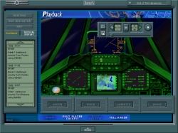 ![]() Mission Recorder How Do You Want It? Flexible Gameplay It's at this point that USAF builds on its strong suit. I chose to fly the mission in the F-117, but after I had hit my target and was out of SAM range, I decided to visit some other action. Hitting ESC brings up the Tactical Display. From here you can click on any of the aircraft listed along the bottom of the screen, and either VISIT (you can observe but have no control) or FLY (jump in the pilot's seat and get in the action.) If you choose to VISIT, be sure you selected AP NAV mode when you left your assigned aircraft. In fact you don’t have to go back to the Tactical Display/Map view to switch planes, you can do it in-flight via a shortcut (SHF 1-4). You can also VISIT other aircraft via the Tactical Display if you have a long ingress to target. I visited an F111 which was about fifteen miles from the target area when I was still fifty miles out. The action over Baghdad was intense. Go to Part III: More on Gameplay