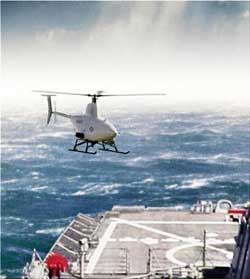 Fully autonomous, Fire Scout can fly high above deployed Marines to watch for threats within 150 nautical miles of the ground control station. The system then directs Navy and Marine weapons accurately to the target with precise target location coordinates or the laser designator.