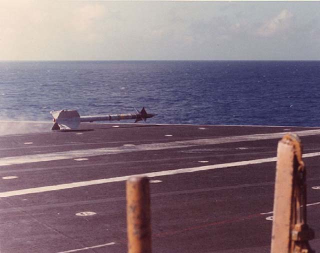 Fun With MissilesThanks to Groucho for sending us these stunning images. According to Cmndr. Brian Binnie, USN (Ret.), accidents like this can happen a few times per cruise. "Other articles I've seen bounding down the angle deck include chaff buckets, air refueling hoses and most spectacular was a Phoenix missile. There's one poor guy, whose job it is to unhook the arresting cable from the tailhook after the airplane lands that literally stands in jeopardy of many of these things." Binnie said, "The only other job that is perhaps more life threatening is the guy who hooks up the launch bar to the catapult."