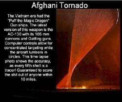 Commando Solo radio broadcasts and leaflet and humanitarian ration drops continued around Mazar-e Sharif, Clarke said. Today's objectives include the continued hammering of emerging targets, the caves and tunnels, and Taliban armor and troop formations, she noted. Commando Solo, and leaflet and ration air drops are also continuing.