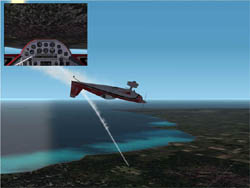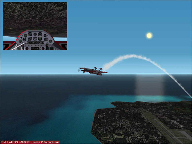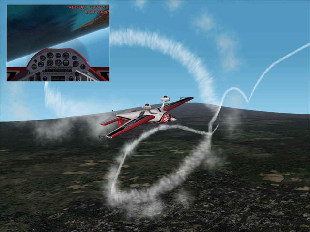COMBATSIM received these exclusive screenshots showing off the aerobatic feature in Microsoft's Flight Simulator 2002. FS2002 lets players fly and navigate some of the most advanced civilian aircraft, including the Cessna Caravan amphibious floatplane and the Boeing 747-400 jumbo jet. Flight Simulator 2002 is available in a standard version and the professional version.