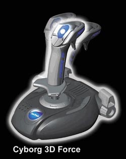 The 3D Rudder Twist on the handle increases the realism in flight sim games but the stick is also great for racing games where force effects are prominent. The new stick comes with multi-features including: four thumb buttons, four base buttons, Rapid Response Trigger, 8-way POV Hat Switch, lever throttle, and 3-D twist. A USB connector allows for simple "plug and play" on Windows or Macintosh. The Cyborg 3D Force Stick will be available in time for the holidays with a suggested retail price of only $60.