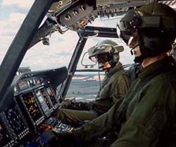 This visor projection improves flying over luminous urban areas and ship landings allowing the pilot to see through the intensified image.