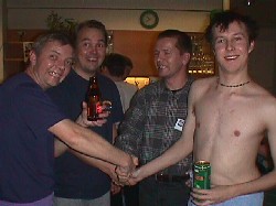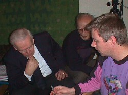 The finnish virtual pilots (WarBirds, Aces High, Combat Flight Sim 2) help the traditional, annual Urban Blitz convention last weekend (2-4th feb 2001) at Tampere, Finland. The convention was a great success and was further a great happening, as for the first time real WW2 pilot veterans attended the meeting. Three vets kindly participated and visited the con during saturday, spending whole evening with the younger virtual pilots. They talked about their own flying and stories, asked dozens if not hundreds questions and were told/shown much about the WW2 simulators. The vets were very happy to see the "young guys" hang on their memories and continuing their traditions in the current day.