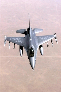 An F-16 Fighting Falcon from Cannon Air Force Base, N.M., sends a Valentine’s Day message to the people back home while patrolling the no-fly-zone over southern Iraq. Members of the Air Force, including the 523rd Fighter Squadron, routinely go overseas for 90-day rotations in support of operations. Operation Southern Watch is supported by about 13,000 men and women in uniform. (Photo by Tech. Sgt Jack Braden)