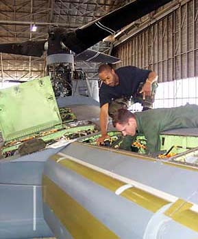 In the meantime, CV-22 mechanics and engineers continue to correct the deficiencies outlined by the Department of Defense. Much of the test team's work is focused on tubing and wires that were positioned too closely to other materials in the aircraft. The close proximity of the wires eventually led to chafing. Mechanics working on the two test aircraft here have been changing the routing and placement of the wires to create a free zone around them.