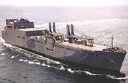 The sealift new construction ships are large, medium-speed, roll-on, roll-off ships (LMSRs). The ships are assigned to the US Navy's Military Sealift Command, and are prepositioned to quickly deliver US Army tanks, armoured personnel carriers, tractor-trailers, and other equipment and supplies to potential areas of conflict around the world. The ships also provide surge sealift support of remote military actions. Their multi-use capabilities make these cargo ships among the most flexible ever built. The USNS Watkins is 950 feet in length, has a beam of 105 feet and displaces approximately 62,000 long tons when fully loaded. The ship has over 390,000 square feet of cargo carrying space. The gas turbine-powered ship will be able to sustain speeds up to 24 knots when fully loaded. (NASSCO Photo)