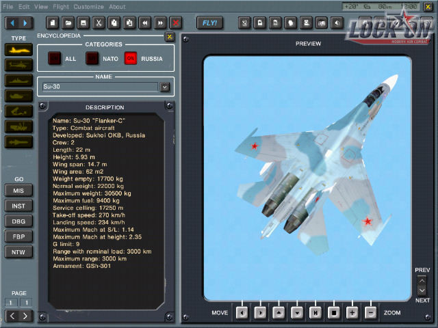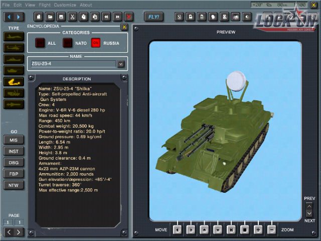 We have a couple of new screens for you from Ubi Soft's, Lock On: Modern Air Combat. The screens are examples of Lock On's encyclopedia module. This module is used for viewing all types of objects in game including vehicles and weapons systems and the stats on those objects.