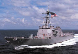 Military and Congressional leaders called on the nation to purchase more technologically advanced ships like the USS Shoup (DDG 86), because, in the words of the commandant of the U.S. Marine Corps, "This ship is the 21st century answer to the global cancer of terrorism."