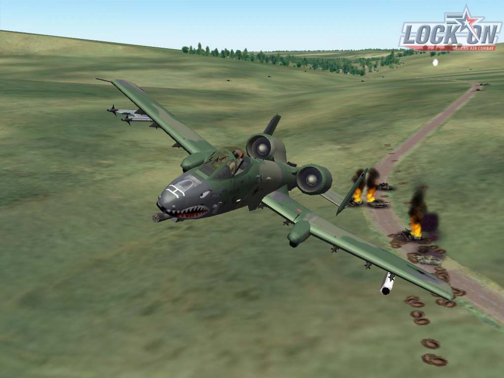 More screenshots from Lock On: Modern Air Combat. This week screens show a landing on the Kuznetsov Aircraft Carrier and the effects of some A-10A carnage on the battle field.