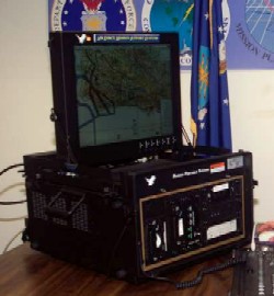 The entire MPS-V unit fits into a protective transit case and weighs about 70 pounds. MPS systems purchased in the early '90s were packaged into 13 large transit cases and required two shipping pallets for deployment. The Unix-based MPS-V features a 440 megahertz processor module, 512 megabytes of RAM, and 4 hard drives totaling 118 gigabytes. It is also the first MPS to use a 20-inch flat panel liquid crystal display color monitor.(Courtesy photo)