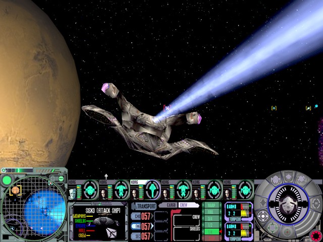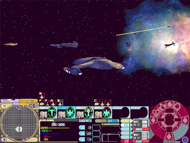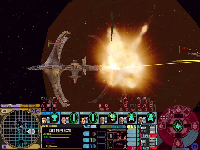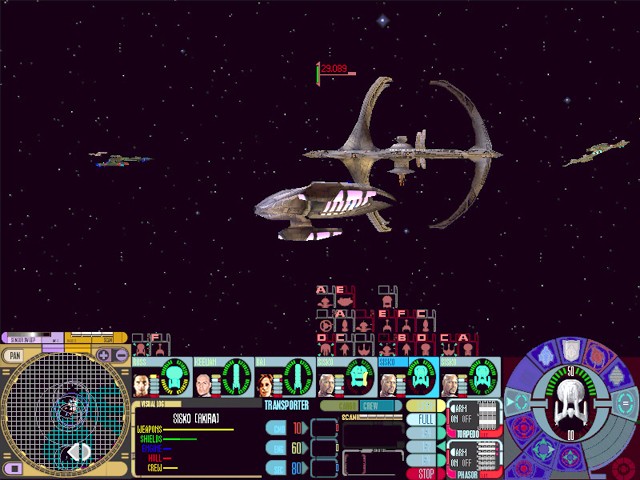 Star Trek Deep Space Nine: Dominion Wars is space combat/strategy game that will allow you to blast away against up to eight players online, or test out their skills on one of the 20 single player missions. Dominion Wars will allow you simultaneous control of up to six different ships from any of four different races – Federation, Klingon, Cardassian and Jem ‘Hadar - in real time combat. Players will be able to recruit a range of different ships and captains through the use of a point system and engage in both single and multi-player battles. Release Date: June 2001. Click on images to enlarge.