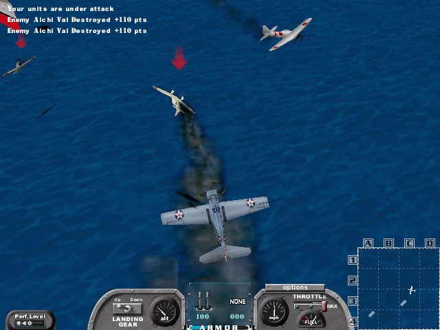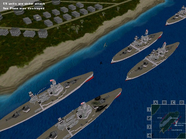 Simon & Schuster Interactive is publishing Pearl Harbor: Zero Hour, set in World War II where you go on bombing and dogfighting missions against Japanese forces. Developed by ASAP Games, Pearl Harbor: Zero Hour gives you arcade-style control over 14 historic aircraft, including the Corsair, P-51 Mustang and B-25 bomber, in 10 missions, such as the Battle of Midway and Guadalcanal. Pearl Harbor:Zero Hour begins with a fully rendered, real-time re-enactment of the Japanese attack on Pearl Harbor, including the sinking of the U.S.S. Arizona. Comes with the complete audiobook CD “Pearl Harbor” by Randall Wallace – the novelization of the highly anticipated motion picture opening Memorial Day weekend. Release Date: May 2001. Click on images to enlarge.