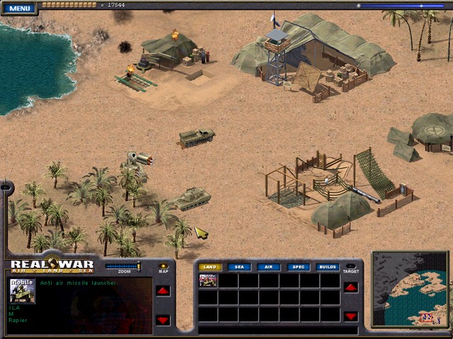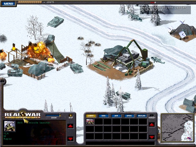 Simon & Schuster's Real War is based on Joint Forces Deployment, a tactical-combat simulation developed for the US military. Players can assume control of either the US forces or a terrorist group known as the Independent Liberation Army, and each side includes 12 scenarios and around 40 hours of gameplay. The game features more than 50 different types of real-life units, including infantry, armored vehicles such as the M1A1 and the T80, nuclear submarines, and aircraft such as the F16 and the B52. Real War is in development at Rival Interactive, and it is scheduled for release in August.
