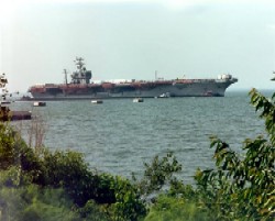 USS Eisenhower was built by Newport News Shipbuilding and christened on October 11, 1975 by Mrs. Mamie Doud Eisenhower, wife of the ship’s namesake, President Dwight D. Eisenhower. The ship was commissioned by the U.S. Navy in 1977 and began its first deployment to the Mediterranean Sea in January 1979. Since then, Eisenhower has been a powerful and effective Naval presence for over 22 years.(Photo by Stu Gilman)