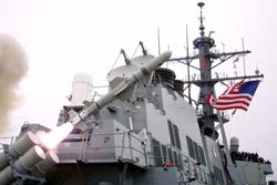The missile was launched from the USS Decatur (DDG-73), an Arleigh Burke-class guided missile destroyer. The test demonstrated the Harpoon Block II weapon system's open-ocean ability to select the proper target using the Navy's Mobile Sea Target and another target ship, the MK-35 SEPTAR. The missile tracked and acquired the target exactly as planned. Flight tests later this summer will demonstrate the missile's other capabilities.