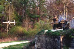 Aerojet also produces the warhead sections for the TOW 2B. Unlike the direct-attack 2A, the 2B flies overhead and destroys the target by firing two Aerojet-built explosively formed penetrator warheads downward.