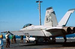 There are currently three operational Super Hornet squadrons: VFA-41, VFA-14, and VFA-115. VFA-115 is the first Super Hornet squadron to deploy, and is currently embarked aboard USS Abraham Lincoln (CVN 72).