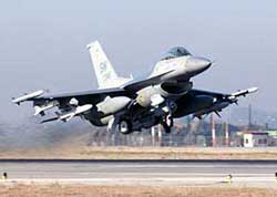 | An F-16CJ Fighting Falcon flown by a 55th Expeditionary Fighter Squadron pilot from Shaw Air Force Base, S.C., takes off during an Operation Northern Watch mission at Incirlik Air Base, Turkey. As part of the regular air and space expeditionary force rotation, 55th EFS airmen have been part of more than 1,400 British, Turkish and U.S. troops enforcing the no-fly zone in northern Iraq. (Photo by Staff Sgt. Jason Gamble) |