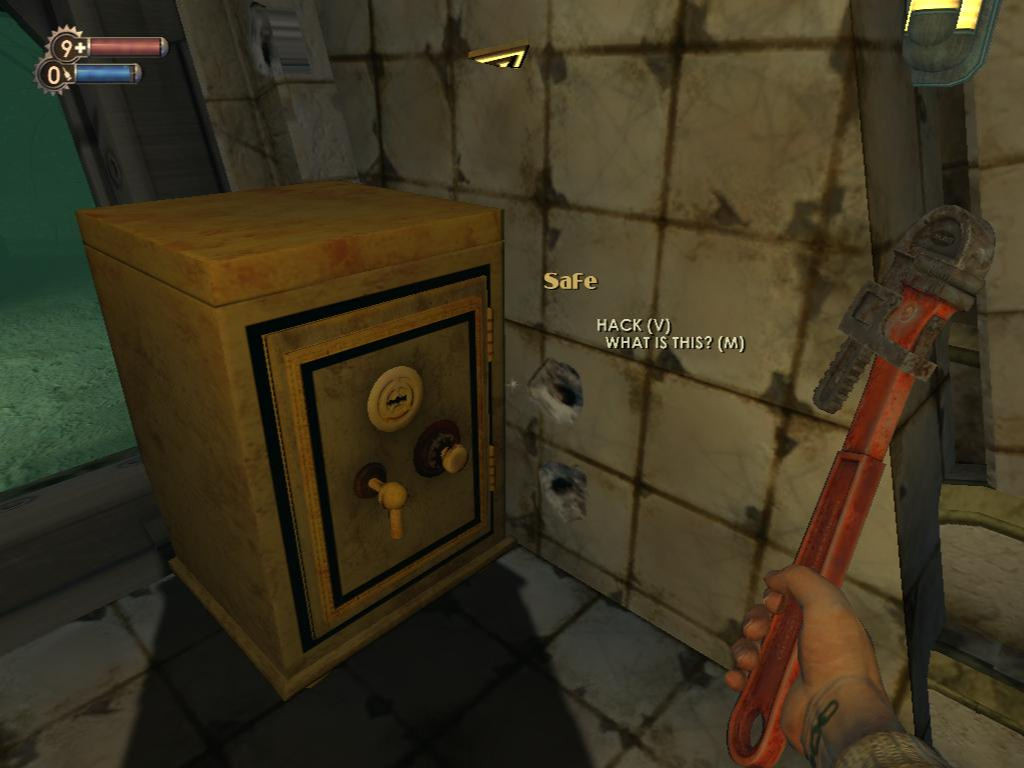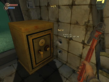 Unexpectedly I find a safe perched on the wall behind the turret and I spend some time carefully listening to its tumblers as I turn the dial this way and that in search of a combination. After several minutes the mechanism surrenders with a satisfying click and the door swings open to reveal some money and ammunition.