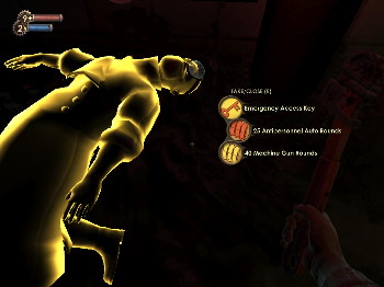 Taking a moment to recover I search his body and find the key which Atlas sent me here for, the key to "Emergency Access" which will allow me to travel to "Neptune's Bounty." Snatching it up I quickly search the rest of the operating theatre for supplies as Atlas congratulates me over the radio and prompts me to come to meet him.