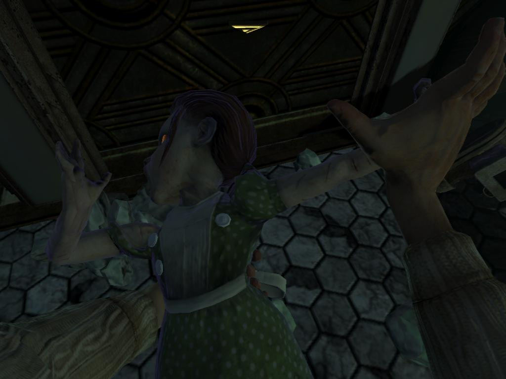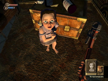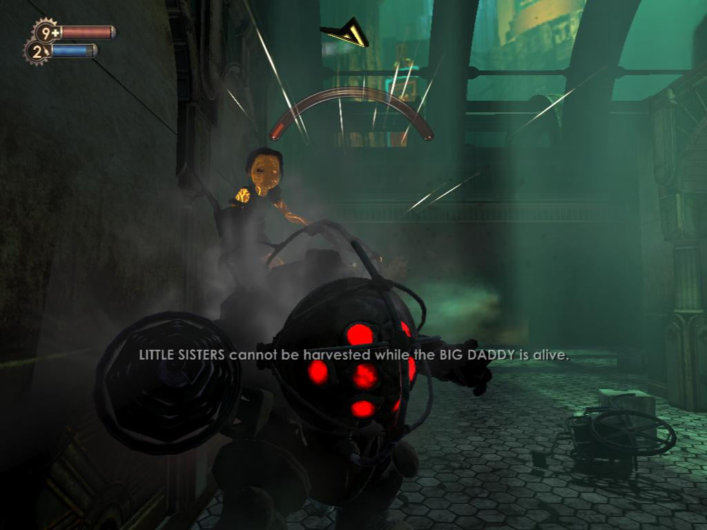 As I slowly walk into the room the Little Sister backs away from me into a corner. It seems then that I must make a choice between life and death for what was once an ordinary little girl, who played and sang and had a normal life before being mutated by this terrible gene altering parasite. In what hell does such a place exist, which forces an ordinary man to make so dire a choice?!