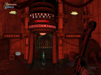 Waiting until the shambling trio are out of sight, I return to the spot of my previous deliberations and once again faced with the choice of the stairway down or the airlock to the undersea walkway, I quickly choose the former.