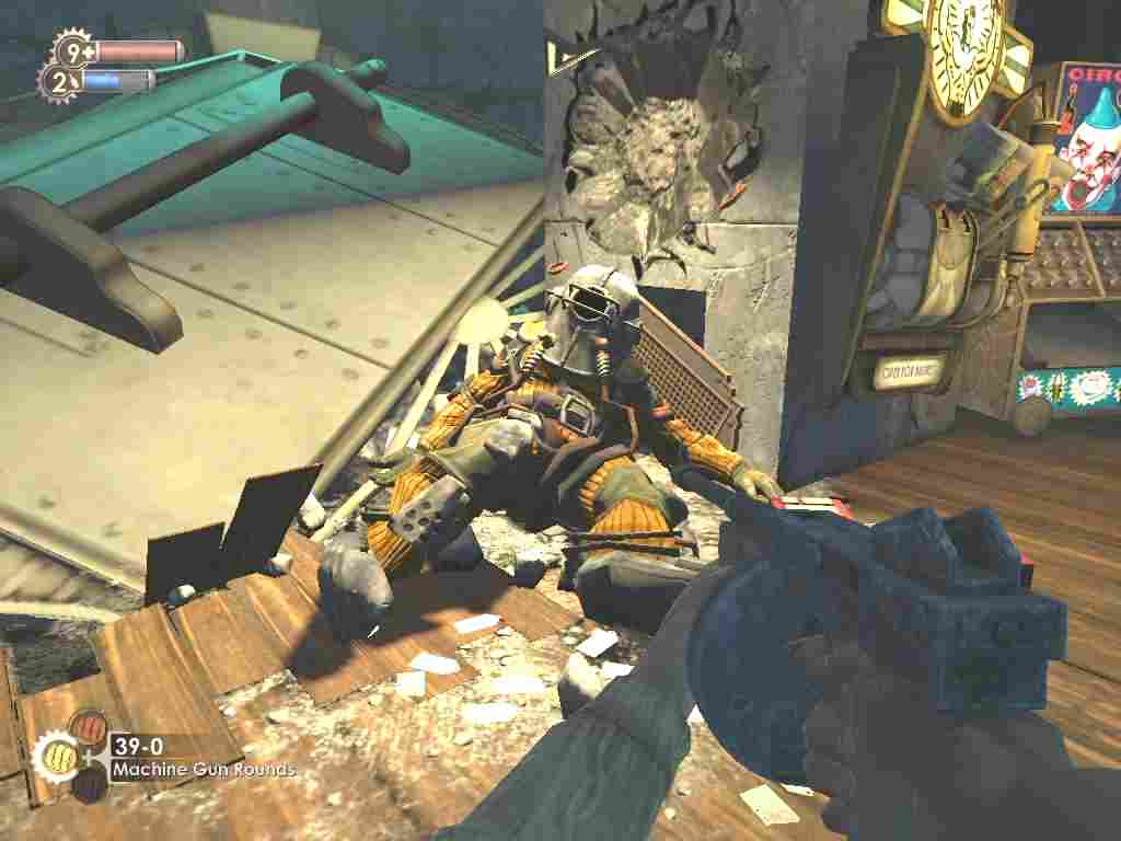 Oh by the way, while searching bodies for loot during all that excitement I found that one of the Splicers had money which I couldn't collect! It seems that your "wallet" has a maximum capacity so it's worth bearing in mind that there's no point saving for that shiny new nuclear rifle you hope will materialize later in the game. Better instead to spend, spend, spend!