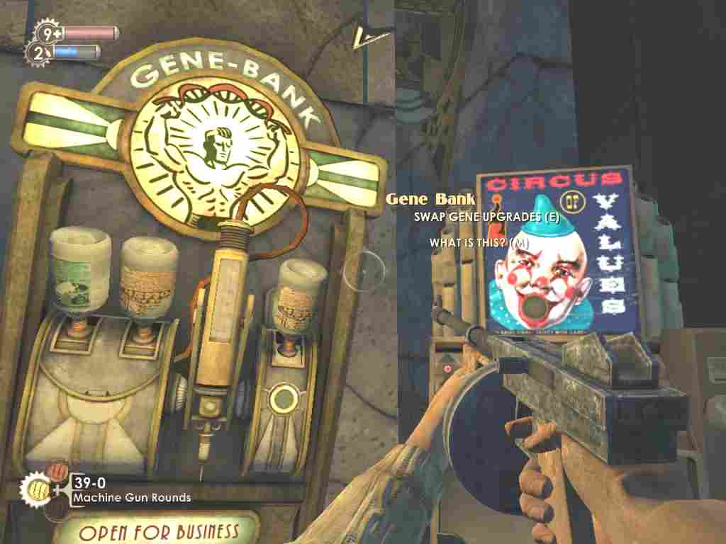 The list of available upgrades is substantial and my head spins around the possibilities of names such as "Target Dummy", "Winter Blast", "Armour Shell" and" Eve Link". But just as I wonder how best to choose, I notice that this machine is capable of increasing the number of Plasmids I can have ready to use at any given time and with a nod I choose "Plasmid Slot".