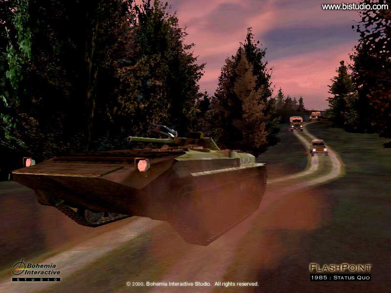 Fig. 2. Convoy moves down roadCOMBATSIM: Flashpoint looks like a fantastic Cold-War era combat simulation. What are the games key features?
