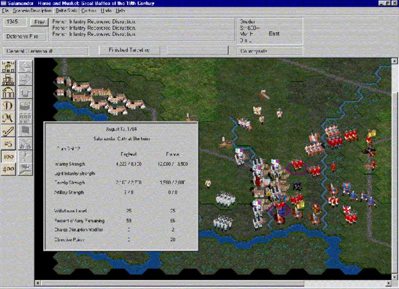 Fig. 5. Halfway through, things don't look good for the BritsAdditionally, the text box where combat results are displayed is not placed in a location where it is easily read and since it is the same gray color as the rest of the interface, it is not particularly easy to read. Giving the various text boxes a white background would have made life easier for the color and bifocally challenged among us.