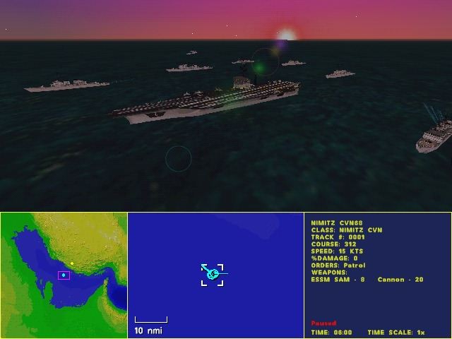 An interview with Ed Gwynn, Producer of Janes Fleet Command. When did the idea of FC originate and how long has it been in development? Ed: After Sonalysts completed 688I we began working on a followup, but we decided to move away from single vessel concentration into a more strategic game. That evolved into Fleet Command. Some months ago I wrote an editorial on a new genre that was blending real time strategy and simulation. This seems like a new direction for simulation makers, and Wargasm and Fleet Command seem to be good examples. At the moment, Fleet Command allows a real time 3d perspective but only third person control. Will the game stay this way or what is the conception with regard to inter operability? Will 688I be inter-operable at some point? Ed: We haven't really made a decision on this, although we'll be keeping our ears open to the response of the players. 688I could be made inter-operable. As a strategy game it sounds cool, but to allow the addition of a theatre commander mode where one player determines strategy and others fly the missions or command the sub would be very cool. Personally, I'm hoping to see an F18 add on and perhaps the original AEGIS idea become inter-operable sims with Fleet Command. Let's get the detail and system guys involved in game play with the strategic crowd. Let's talk about the game itself. Tell us about the campaign structure. And is it dynamic? Ed: There are four different areas, and in each area specific tasks are required of you in order to move on to the next area. The campaign is semi-dynamic, with elements of randomness and probabilities of what will occur.